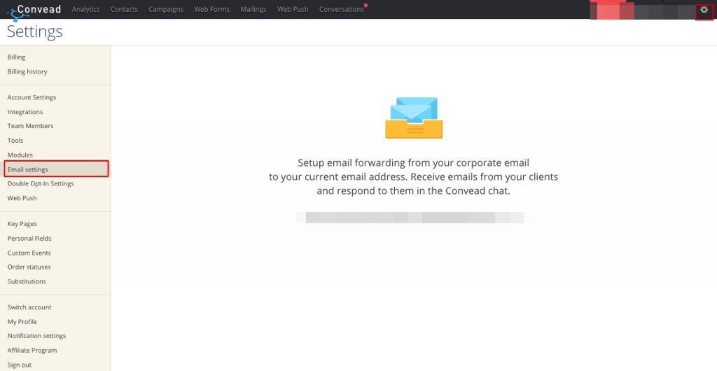 - A confirmation email will be sent to the specified address. It will come to your Convead chat. Click the link in the email.