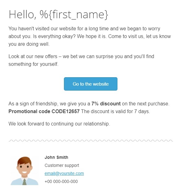 Sleeping – this is the least valuable segment of customers. It includes those who placed 1 or 2 orders, but the last purchase took place more than two and a half months (76 days) ago. However, these customers can still come back to you. How can their interest be revived? You can send them an email with a reminder about your store (“We miss you”), offer favorable discounts on recommended products, send them an interesting article or video review, etc.