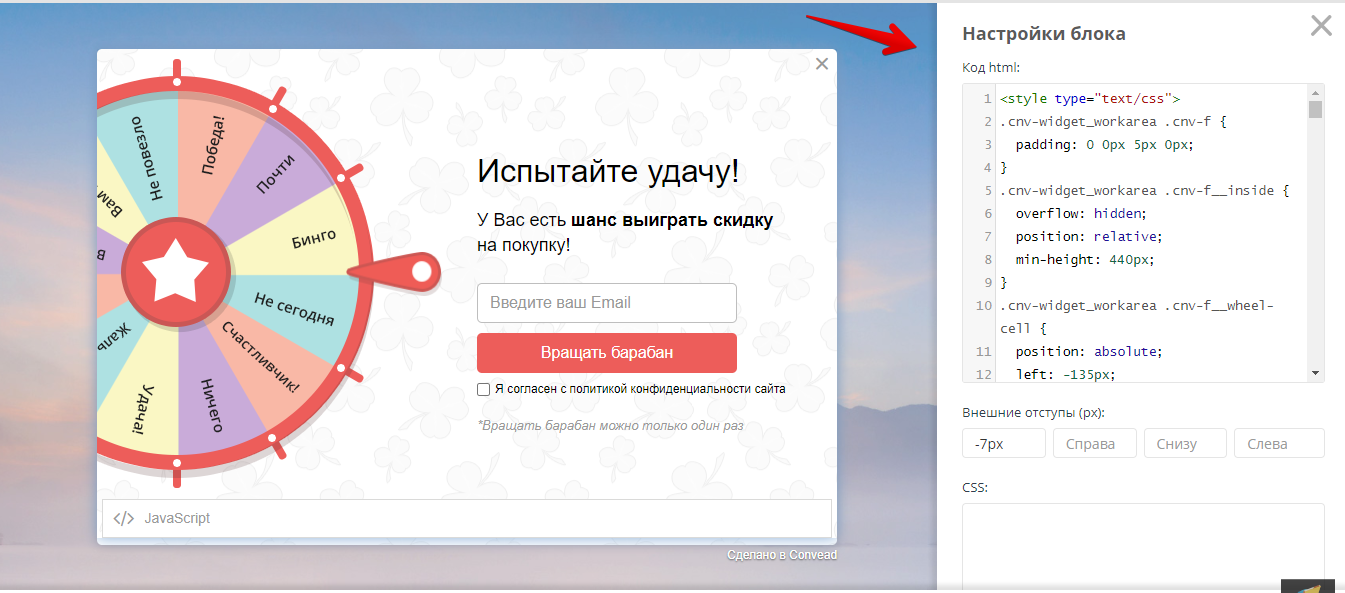 Вместо стандартной картинки в виджете Колесо Фортуны вы можете загрузить любое изображение с необходимыми вам товарами или услугами в секторах.