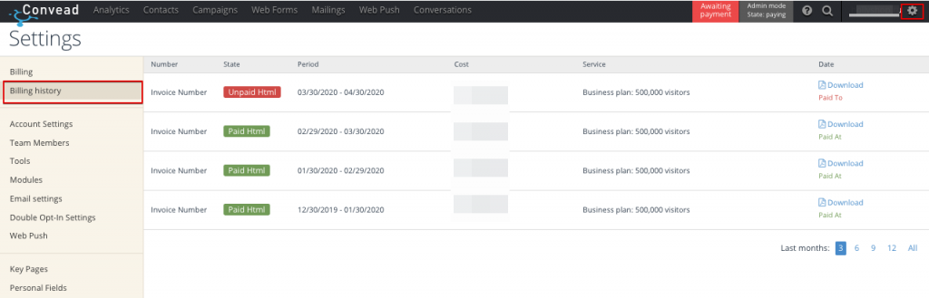 If you change the tariff in the middle of your billing period, Convead will refund you for unused days of the old tariff and will charge you for the days before the end of the billing period at the new tariff.
